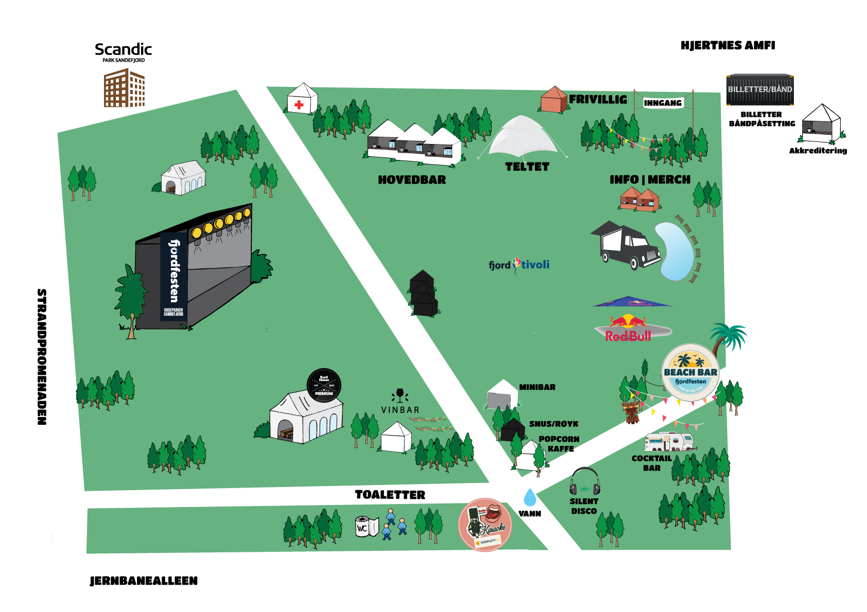 Festivalområdet er i Badeparken, som ligger midt i Sandefjord sentrum.